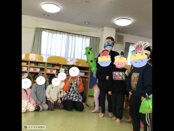 保育園には可愛い年長鬼さんが来てくれました(ちょっぴり怖い職員鬼も)。